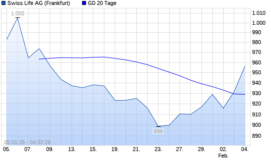 Mit dem Anstieg auf 931,60 EUR hat die Swiss Life-Aktie am 03.02.2026 die 20-Tage-Linie nach oben gekreuzt.