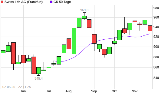 Mit dem Anstieg auf 931,40 EUR hat die Swiss Life-Aktie am 21.11.2025 die 50-Tage-Linie nach oben gekreuzt.