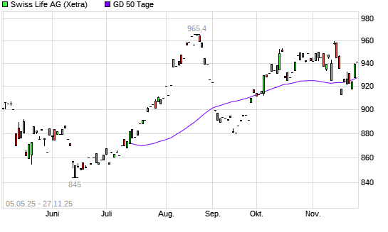 Mit dem Anstieg auf 940,60 EUR hat die Swiss Life-Aktie am 26.11.2025 die 50-Tage-Linie nach oben gekreuzt.