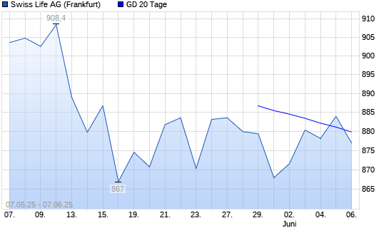 Mit dem Rücksetzer auf 877,00 EUR hat die Swiss Life-Aktie am 06.06.2025 die 20-Tage-Linie nach unten gekreuzt.