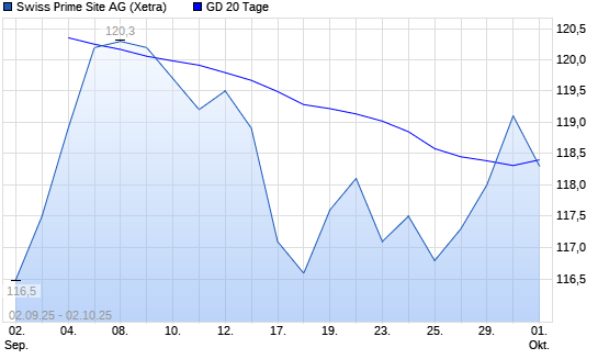 Mit dem Rücksetzer auf 117,80 EUR hat die Swiss Prime Site-Aktie am 01.10.2025 die 20-Tage-Linie nach unten gekreuzt.