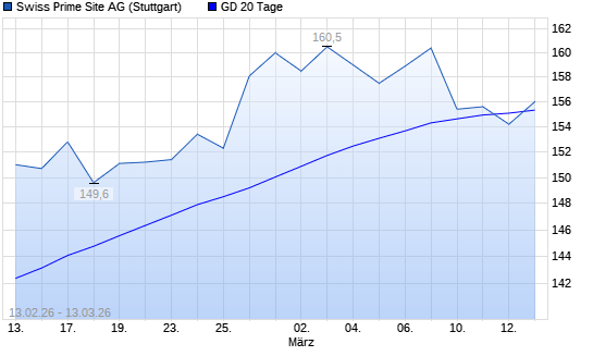 Mit dem Rücksetzer auf 151,90 EUR hat die Swiss Prime Site-Aktie am 12.03.2026 die 20-Tage-Linie nach unten gekreuzt.