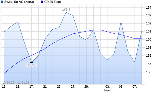 Mit dem Anstieg auf 160,60 EUR hat die Swiss Re-Aktie am 10.11.2025 die 20-Tage-Linie nach oben gekreuzt.