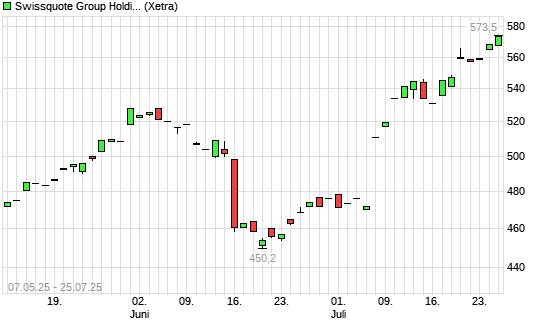 Mit dem Anstieg auf 565,00 EUR hat die Swissquote Group-Aktie (ISIN CH0010675863) am 24.07.2025 ein neues All-Time-High erreicht und damit den Kurs vom 23.07.2025 eingestellt.
