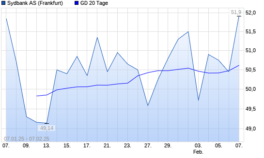 Mit dem Rücksetzer auf 50,45 EUR hat die Sydbank-Aktie am 06.02.2025 die 20-Tage-Linie nach unten gekreuzt.