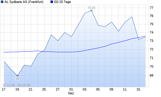 Mit dem Rücksetzer auf 73,15 EUR hat die Sydbank-Aktie am 15.12.2025 die 20-Tage-Linie nach unten gekreuzt.