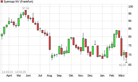 Mit dem Rücksetzer auf 66,88 EUR hat die Syensqo-Aktie (ISIN BE0974464977) am 13.03.2025 ein neues All-Time-Low erreicht und damit den Kurs vom 12.03.2025 eingestellt.