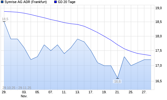 Mit dem Anstieg auf 17,60 EUR hat die Symrise ADR-Aktie am 28.11.2025 die 20-Tage-Linie nach oben gekreuzt.