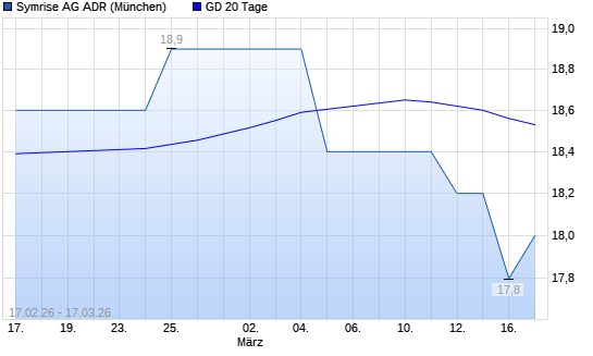 Mit dem Anstieg auf 18,00 EUR hat die Symrise ADR-Aktie am 16.03.2026 die 20-Tage-Linie nach oben gekreuzt.