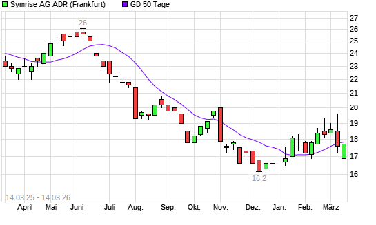 Mit dem Anstieg auf 17,90 EUR hat die Symrise ADR-Aktie am 13.03.2026 die 50-Tage-Linie nach oben gekreuzt.