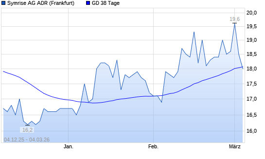 Mit dem Rücksetzer auf 17,90 EUR hat die Symrise ADR-Aktie am 03.03.2026 die 38-Tage-Linie nach unten gekreuzt.