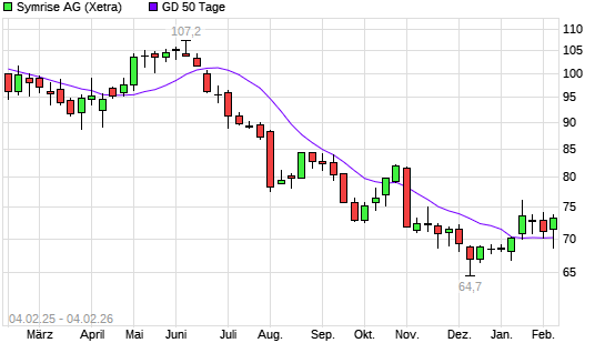 Mit dem Rücksetzer auf 68,88 EUR hat die Symrise-Aktie am 03.02.2026 die 50-Tage-Linie nach unten gekreuzt.