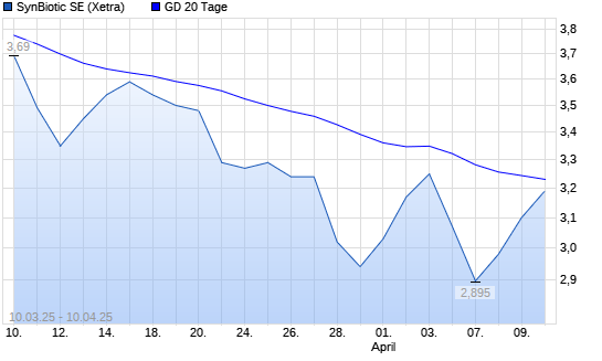 Mit dem Anstieg auf 3,25 EUR hat die SynBiotic-Aktie am 09.04.2025 die 20-Tage-Linie nach oben gekreuzt.