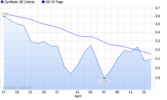 Mit dem Rücksetzer auf 3,00 EUR hat die SynBiotic-Aktie am 15.04.2025 die 20-Tage-Linie nach unten gekreuzt.