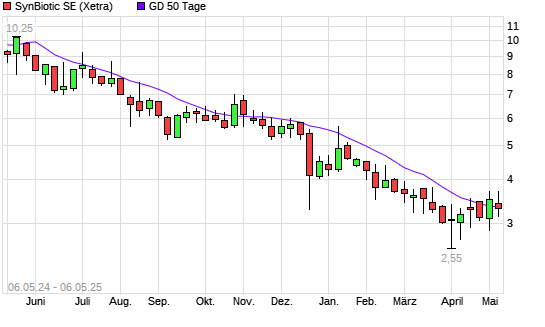 Mit dem Rücksetzer auf 3,02 EUR hat die SynBiotic-Aktie am 05.05.2025 die 50-Tage-Linie nach unten gekreuzt.