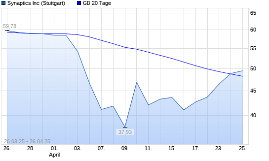 Mit dem Anstieg auf 48,91 EUR hat die Synaptics-Aktie am 25.04.2025 die 20-Tage-Linie nach oben gekreuzt.