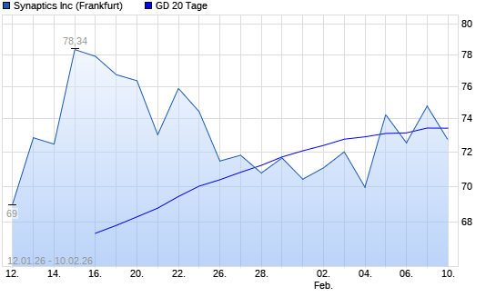 Mit dem Anstieg auf 74,78 EUR hat die Synaptics-Aktie am 09.02.2026 die 20-Tage-Linie nach oben gekreuzt.