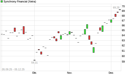 Mit dem Anstieg auf 67,63 EUR hat die Synchrony Financial-Aktie (ISIN US87165B1035) am 04.12.2025 ein neues All-Time-High erreicht und damit den Kurs vom 03.12.2025 eingestellt.