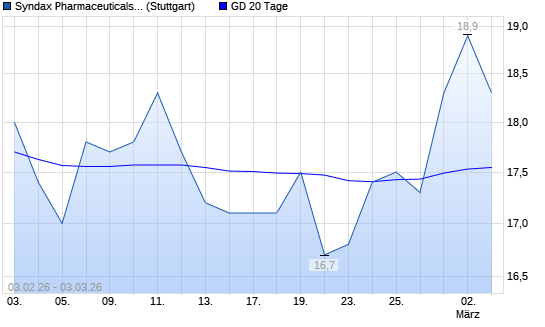 Mit dem Anstieg auf 18,30 EUR hat die Syndax Pharmaceuticals-Aktie am 02.03.2026 die 20-Tage-Linie nach oben gekreuzt.