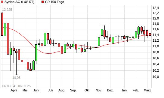 Mit dem Anstieg auf 11,40 EUR hat die Synlab-Aktie am 05.03.2025 die 100-Tage-Linie nach oben gekreuzt.