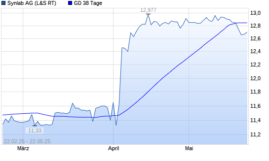Mit dem Rücksetzer auf 12,62 EUR hat die Synlab-Aktie am 21.05.2025 die 38-Tage-Linie nach unten gekreuzt.