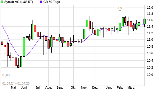 Mit dem Anstieg auf 11,46 EUR hat die Synlab-Aktie am 31.03.2025 die 50-Tage-Linie nach oben gekreuzt.Die Synlab-Aktie befindet sich seit dem 30.10.2024 im langfristigen Aufwärtstrend und hat ...weiterlesen