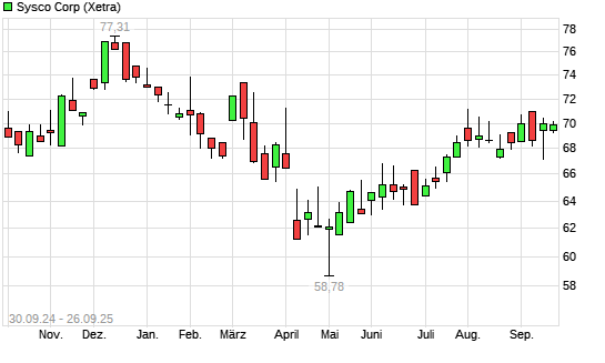 Mit dem Anstieg auf 70,52 EUR hat die Sysco-Aktie (ISIN US8718291078) am 29.09.2025 ein neues 6-Monats-Hoch erreicht und damit den Kurs vom 22.09.2025 eingestellt.