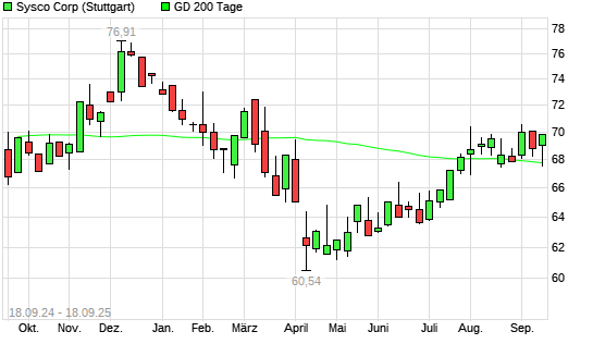 Mit dem Anstieg auf 68,38 EUR hat die Sysco-Aktie am 17.09.2025 die 200-Tage-Linie nach oben gekreuzt.
