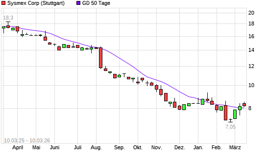 Mit dem Anstieg auf 7,90 EUR hat die Sysmex-Aktie am 09.03.2026 die 50-Tage-Linie nach oben gekreuzt.
