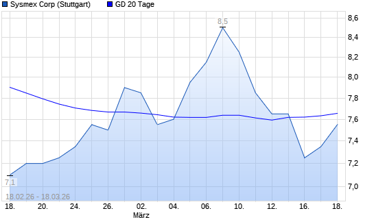 Mit dem Rücksetzer auf 7,00 EUR hat die Sysmex-Aktie am 17.03.2026 die 20-Tage-Linie nach unten gekreuzt.