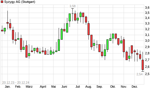 Mit dem Rücksetzer auf 2,60 EUR hat die Syzygy-Aktie (ISIN DE0005104806) am 19.12.2024 ein neues 10-Jahres-Tief erreicht und damit den Kurs vom 18.12.2024 eingestellt.