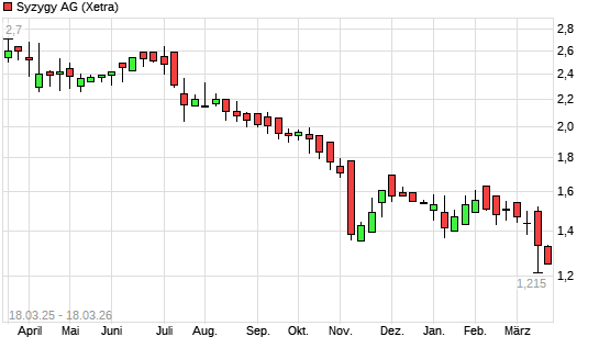 Mit dem Rücksetzer auf 1,20 EUR hat die Syzygy-Aktie (ISIN DE0005104806) am 17.03.2026 ein neues All-Time-Low erreicht und damit den Kurs vom 07.11.2025 eingestellt.