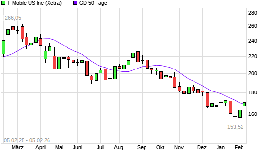 Mit dem Anstieg auf 172,58 EUR hat die T-Mobile US-Aktie am 04.02.2026 die 50-Tage-Linie nach oben gekreuzt.