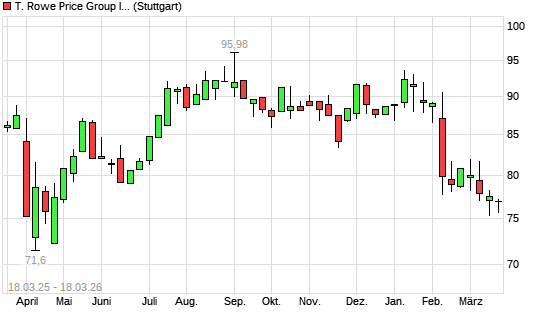 Mit dem Rücksetzer auf 75,66 EUR hat die T. Rowe Price Group-Aktie (ISIN US74144T1088) am 17.03.2026 ein neues 6-Monats-Tief erreicht und damit den Kurs vom 16.03.2026 eingestellt.