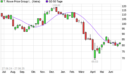 Mit dem Rücksetzer auf 81,10 EUR hat die T. Rowe Price Group-Aktie am 26.06.2025 die 50-Tage-Linie nach unten gekreuzt.