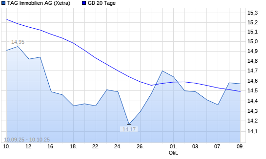 Mit dem Anstieg auf 14,51 EUR hat die TAG Immobilien-Aktie am 09.10.2025 die 20-Tage-Linie nach oben gekreuzt.
