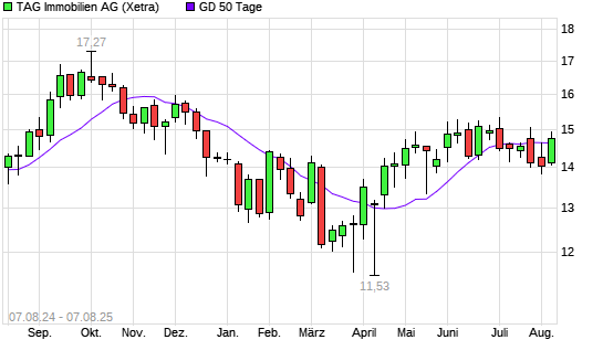 Mit dem Anstieg auf 14,61 EUR hat die TAG Immobilien-Aktie am 06.08.2025 die 50-Tage-Linie nach oben gekreuzt.