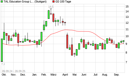 Mit dem Anstieg auf 9,35 EUR hat die TAL Education-Aktie am 25.09.2025 die 100-Tage-Linie nach oben gekreuzt.