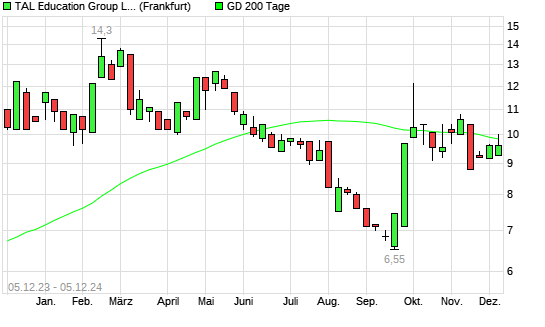 Mit dem Anstieg auf 10,00 EUR hat die TAL Education-Aktie am 04.12.2024 die 200-Tage-Linie nach oben gekreuzt.