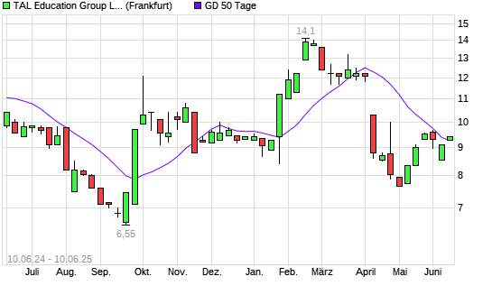Mit dem Anstieg auf 9,25 EUR hat die TAL Education-Aktie am 09.06.2025 die 50-Tage-Linie nach oben gekreuzt.