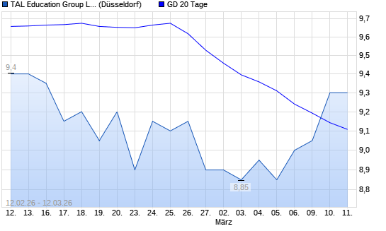 Mit dem Anstieg auf 9,30 EUR hat die TAL Education-Aktie am 11.03.2026 die 20-Tage-Linie nach oben gekreuzt.Die TAL Education-Aktie befindet sich seit dem 24.02.2026 im ...weiterlesen