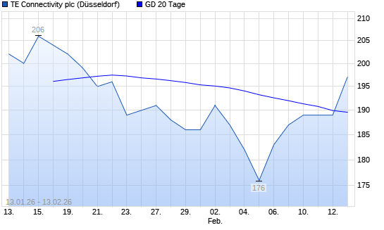 Mit dem Anstieg auf 192,00 EUR hat die TE Connectivity-Aktie am 12.02.2026 die 20-Tage-Linie nach oben gekreuzt.