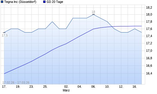 Mit dem Anstieg auf 17,80 EUR hat die TEGNA-Aktie am 16.03.2026 die 20-Tage-Linie nach oben gekreuzt.