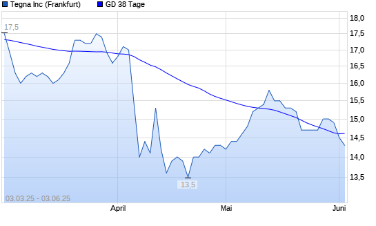 Mit dem Rücksetzer auf 14,50 EUR hat die TEGNA-Aktie am 02.06.2025 die 38-Tage-Linie nach unten gekreuzt.