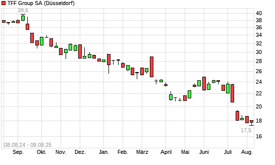Mit dem Rücksetzer auf 17,45 EUR hat die TFF Group-Aktie (ISIN FR0013295789) am 07.08.2025 ein neues All-Time-Low erreicht und damit den Kurs vom 01.08.2025 eingestellt.