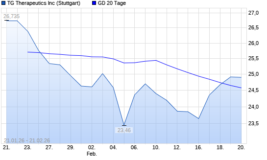 Mit dem Anstieg auf 24,78 EUR hat die TG Therapeutics-Aktie am 20.02.2026 die 20-Tage-Linie nach oben gekreuzt.