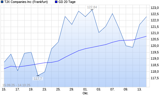 Mit dem Anstieg auf 121,66 EUR hat die TJX Companies-Aktie am 13.10.2025 die 20-Tage-Linie nach oben gekreuzt.