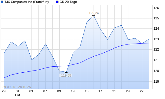 Mit dem Rücksetzer auf 122,58 EUR hat die TJX Companies-Aktie am 27.10.2025 die 20-Tage-Linie nach unten gekreuzt.