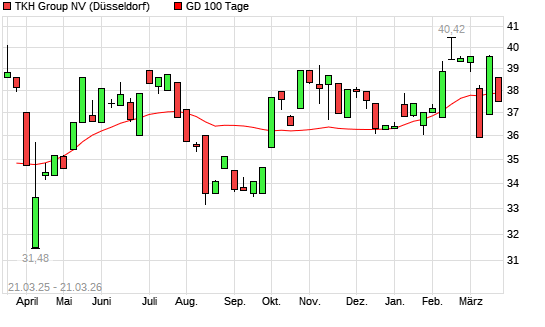 Mit dem Rücksetzer auf 37,32 EUR hat die TKH Group-Aktie am 20.03.2026 die 100-Tage-Linie nach unten gekreuzt.