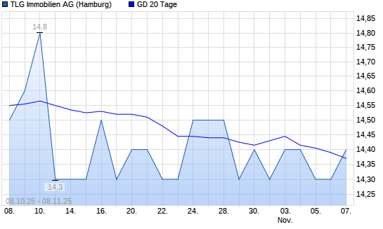 Mit dem Anstieg auf 14,40 EUR hat die TLG Immobilien-Aktie am 07.11.2025 die 20-Tage-Linie nach oben gekreuzt.